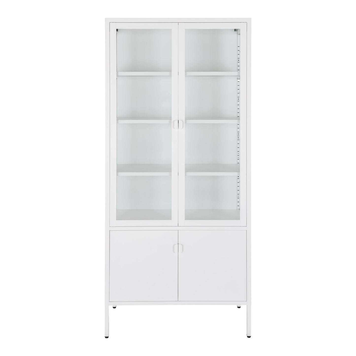 Brisbane Vitrineskab - Vitrineskab, hvid med 4 låger er mere end bare et opbevaringsmøbel. Det er et kunstværk i sig selv, der kombinerer funktionalitet og æstetik på enestående vis. Dette vitrineskab vil tilføje elegance og charme til ethvert rum samt give dig mulighed for at vise dine mest værdifulde genstande frem på en stilfuld måde. Invester i dette vitrineskab i dag og skab en unik atmosfære, der vil imponere både dig selv og dine gæster.
