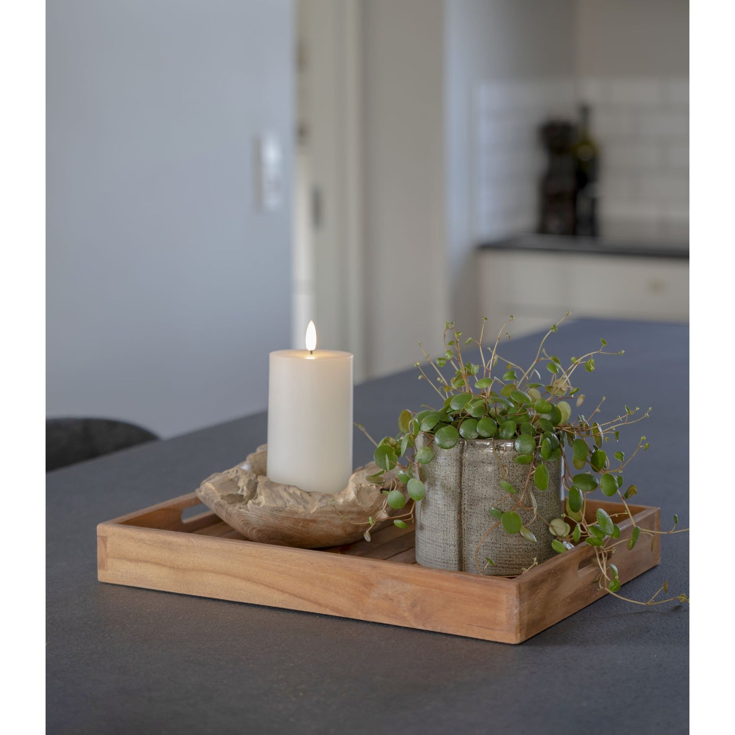 Teaktræ er kendt for sin holdbarhed og modstandsdygtighed over for fugt, hvilket gør disse bakker perfekte til både indendørs og udendørs brug. Du kan trygt bruge dem til at servere drikkevarer eller snacks udendørs på en solrig sommerdag. Deres robuste konstruktion sikrer, at de kan modstå daglig brug, og deres glatte overflade gør dem nemme at rengøre.