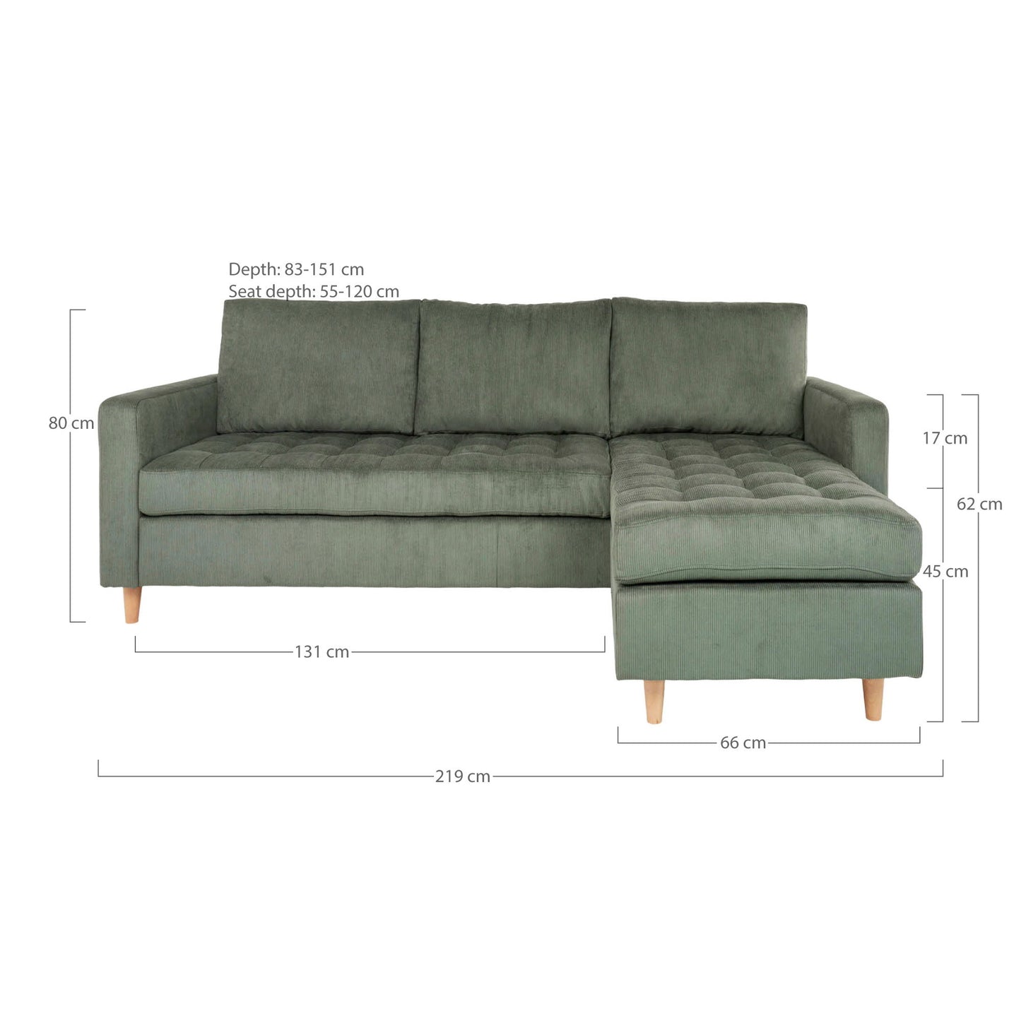 Firenze Sofa i fløjl, grøn med natur træben, HN1011 Materiale: Skum, Polyester, Bøg Farve: Grøn